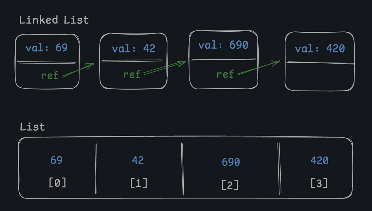 Items in a "normal" list are stored next to each other in memory, and to get an item from a normal List we have to use a numbered index:
