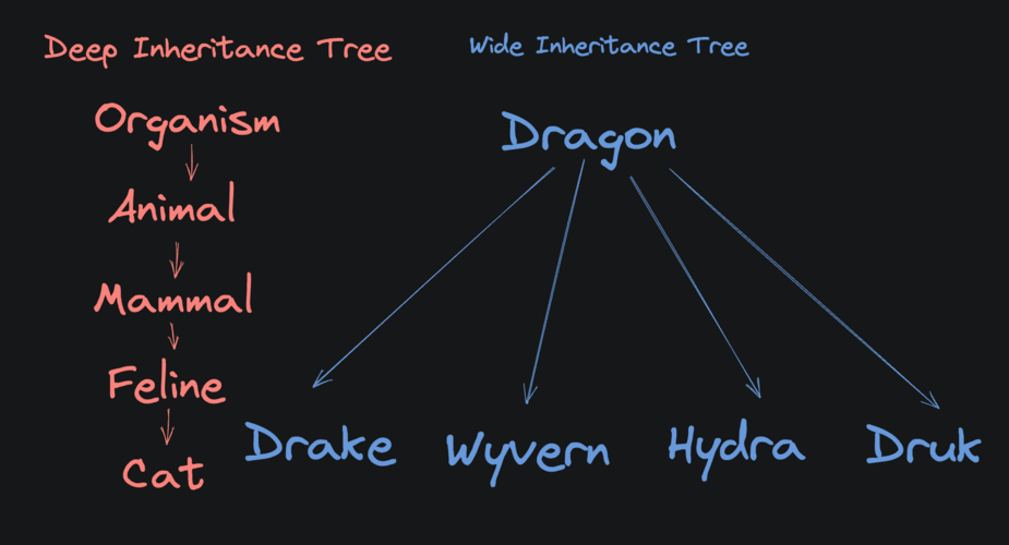 In your application code, you likely won't see a Camera class inherit from a chain of 13 classes up to Equipment. If you do: run. There are better organizations to work for, I swear.